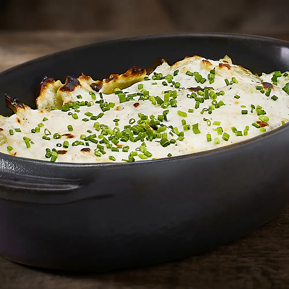 Ravioles Saint-Jean®, crème, Saint-Félicien, poulet rôti maison et ciboulette fraîche.