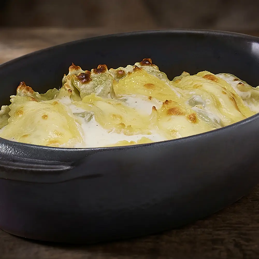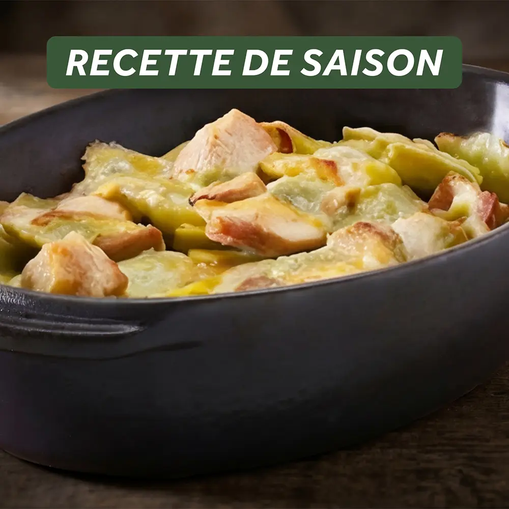 Ravioles, crème, Saint-Marcellin IGP, poitrine paysanne fumée au bois de hêtre.