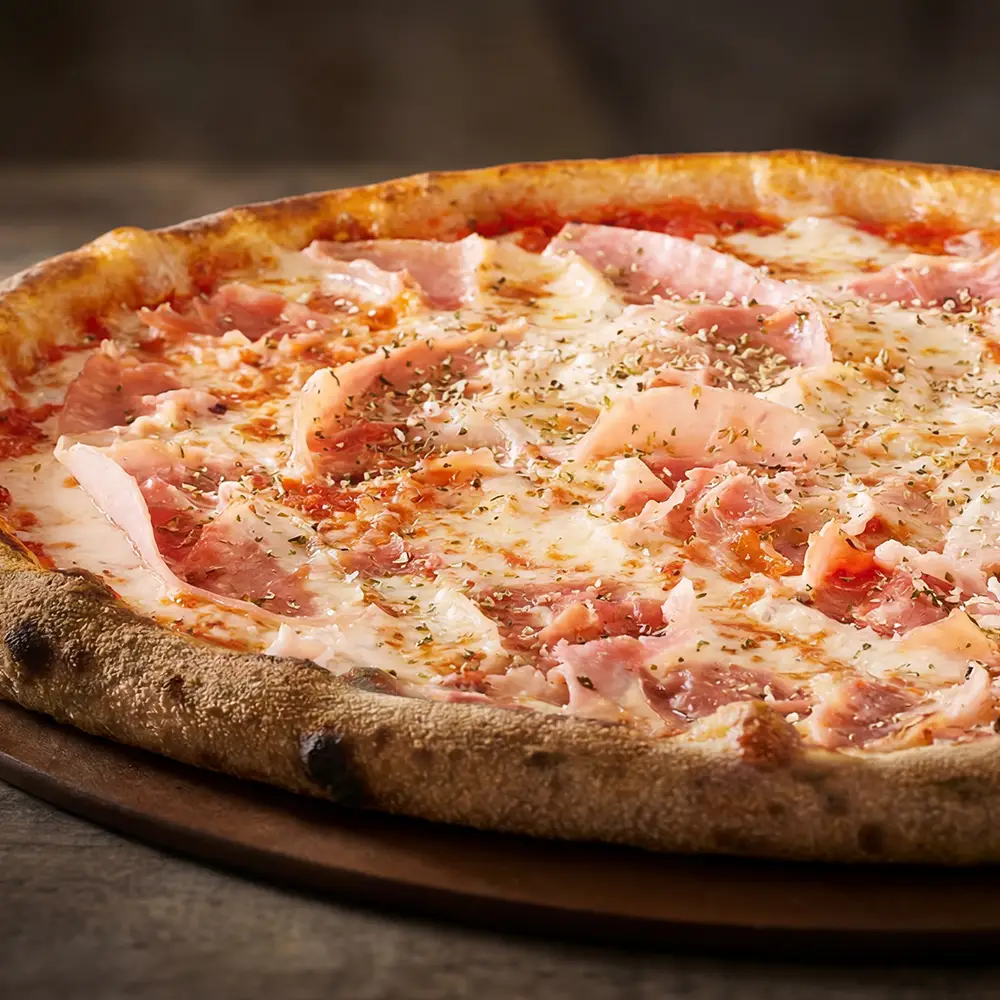 Sauce tomate, mozzarella fior di latte, jambon blanc et origan.