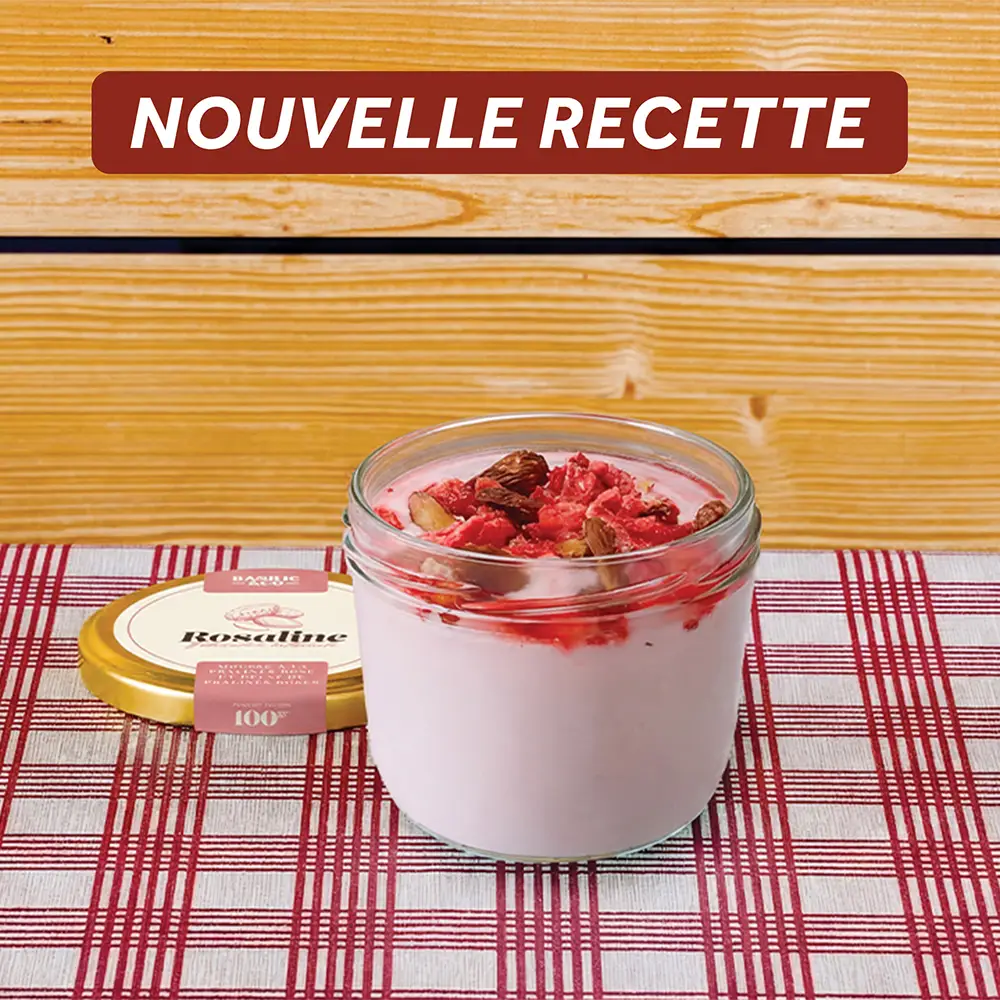 Mozzarella fior di latte, Saint-Félicien, Saint-Marcellin IGP et pralines roses.